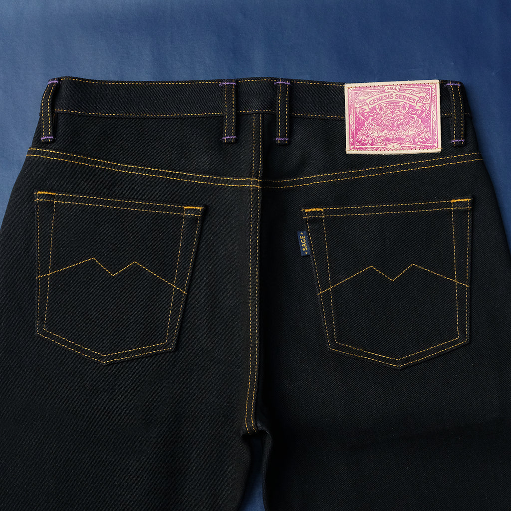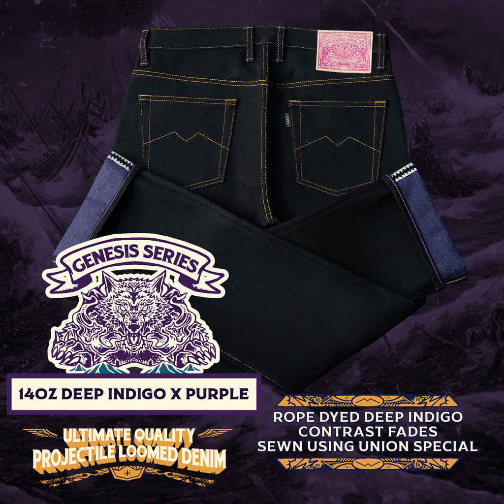 Sage Denim Genesis Series : 14oz Deep Indigo x Purple Weft Projectile Loomed Denim